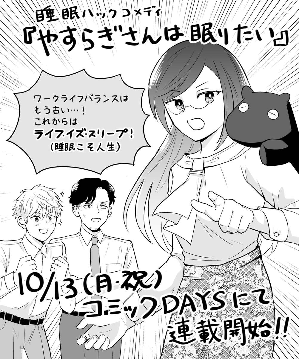 @comicdays_team【新連載本日開始】 『やすらぎさんは眠りたい』(青井べ子)、連載配信スタート! 必要不可欠でありながら、現代社会で軽視されている存在「睡眠」。現代社会は躊躇なく我々の睡眠時間を奪っていく。そんな社会に抗う一人の女性がいた!読むとためになる睡眠コメディ! comic-days.com/series/2550912… pic.x.com/giLSz9eG7U