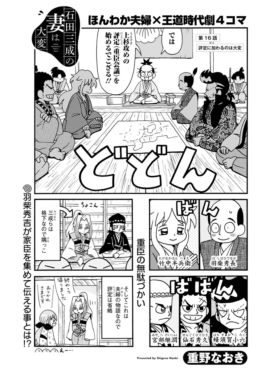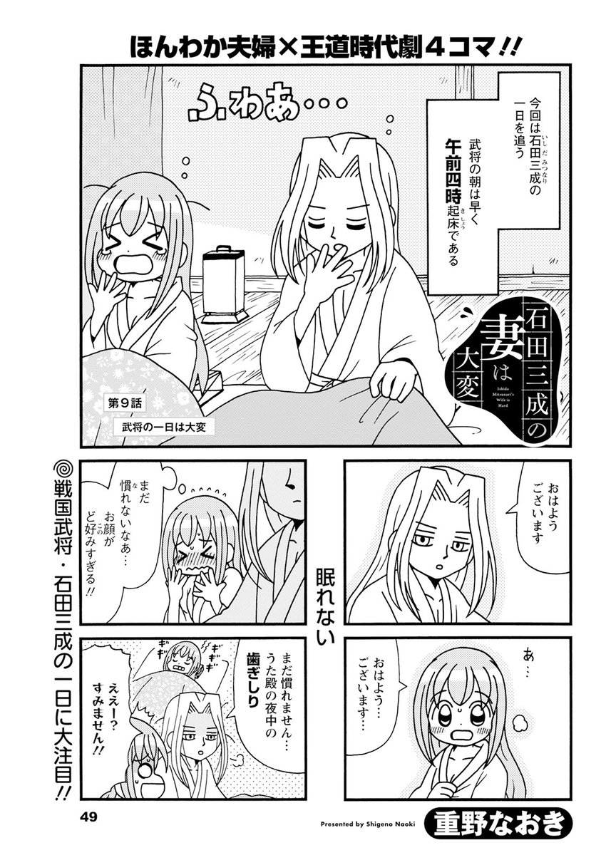 @shigeno_naoki#石田三成の妻は大変 2巻発売にともない ニコニコ漫画のほうでも読めるようになりました。 お気に入りに追加していただけると幸いです。 石田三成の妻は大変 / 重野なおき manga.nicovideo.jp/comic/74143 #ニコニコ漫画