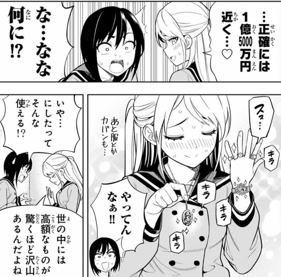 @tdkubota2返信先:@yutaka_aohashi 『ドリーム☆ジャンボ☆ガール』? 宝くじで1等前後賞合わせて7億円当たった女子高生2人組のコメディ漫画。 初っ端から豪遊してたけどマンション買った場面あったかどうか……