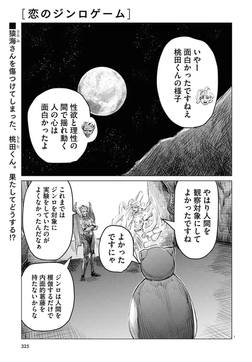 @oskdgkmgkkkありがとうございます!恋のジンロゲームはオススメ漫画です。このお話の根底には、良識あり他人の気持ちを考えることができる若者は、良識があるほどに恋愛をできないのでは?という問題意識があって、そこに対する物語ってあった方がいいのでは?みたいな気持ちがあったんだよな。