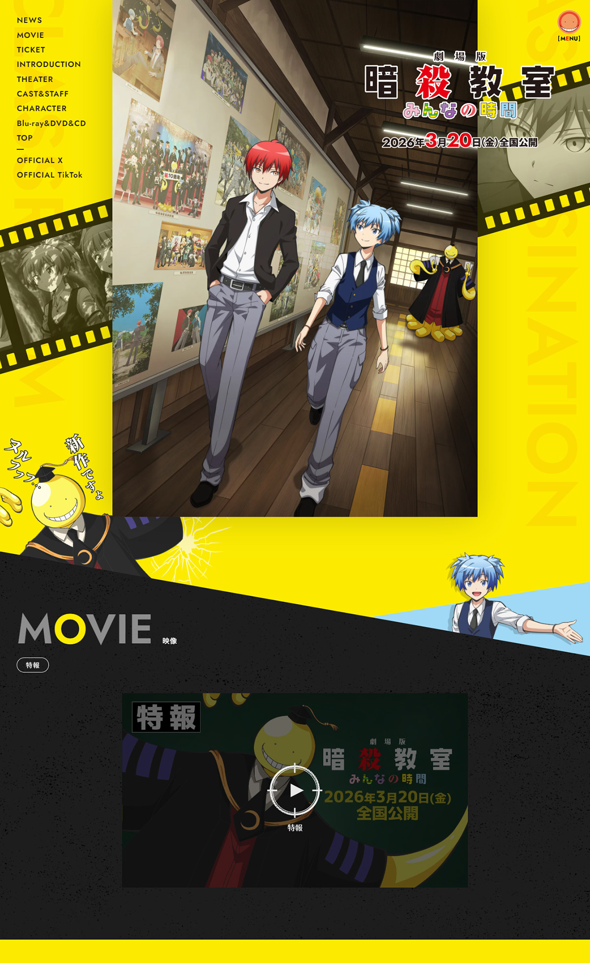 @traderaybee返信先:@livedoornews 劇場版『暗殺教室 みんなの時間』本予告解禁!🎬 3年E組の日常、あなたの知らない物語が描かれる✨ 2026年3月20日公開!