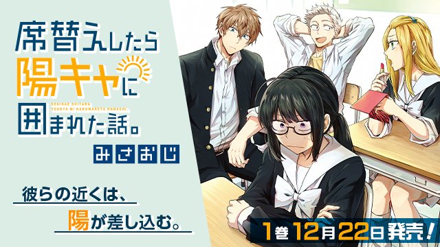 @r240915\2025年12月22日発売!/ 発売まで、あと8日! ✅席替えしたら陽キャに囲まれた話。(1)(みさおじ) 2025年12月22日発売予定「席替えしたら陽キャに囲まれた話。 1巻」のデジタル版です。 hb.afl.rakuten.co.jp/hgc/g00q0722.8… pic.x.com/Nf5oWZmVSI