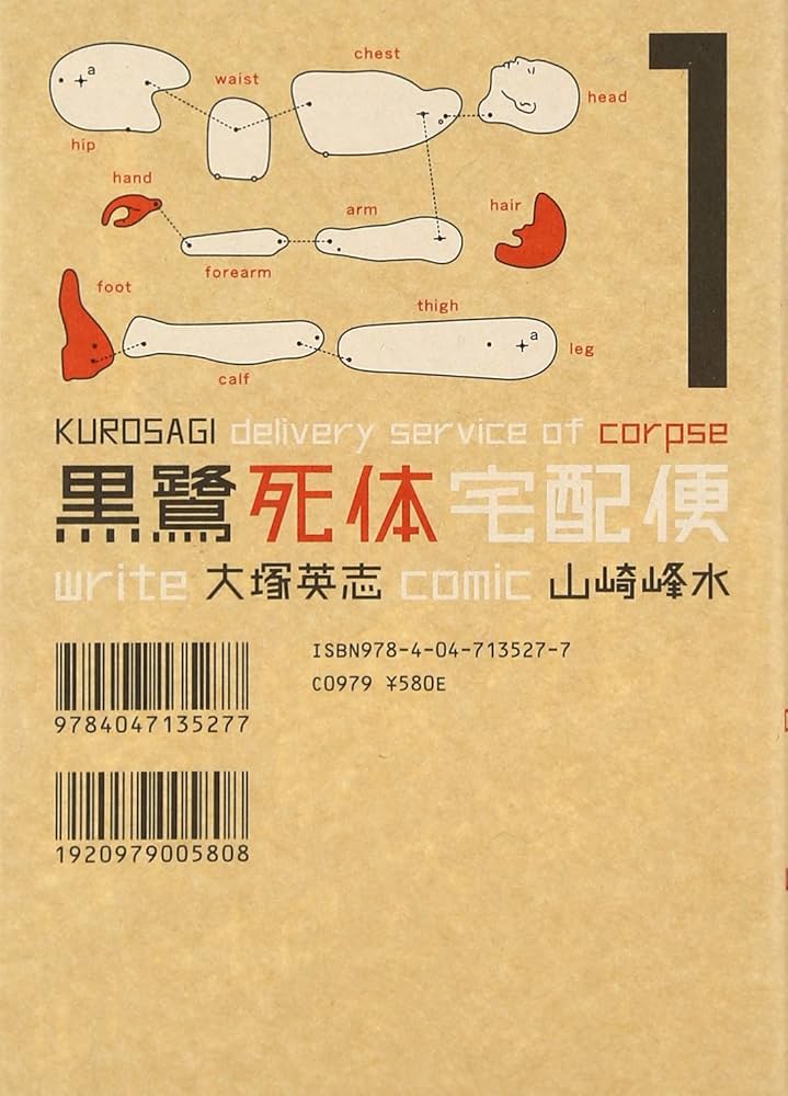 @drainage_ankyoはるか昔、私がまだ若かりし頃 田舎の本屋さんで当時は漫画の表紙といえばキャラ絵がバーーン!!ばかりだった中で 黒鷺死体宅配便の表紙のタイトル文字と人体パーツ図だけで構成されたキャラ絵は無く余白の多いシンプルな表紙がすごく斬新に目に映ったのよね それが手に取るきっかけだった