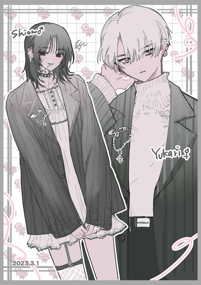 @three9moon🎀お知らせ🧷 12月5日(金)より ガンガンONLINEアプリで 新連載「女装男子と男装女子はお似合いカップル」が始まりました。 以前より描いていたシオンとユカリの いちゃいちゃカップルラブコメです。 よろしくお願いいたします🫶 pic.x.com/WCZnZBvH8R