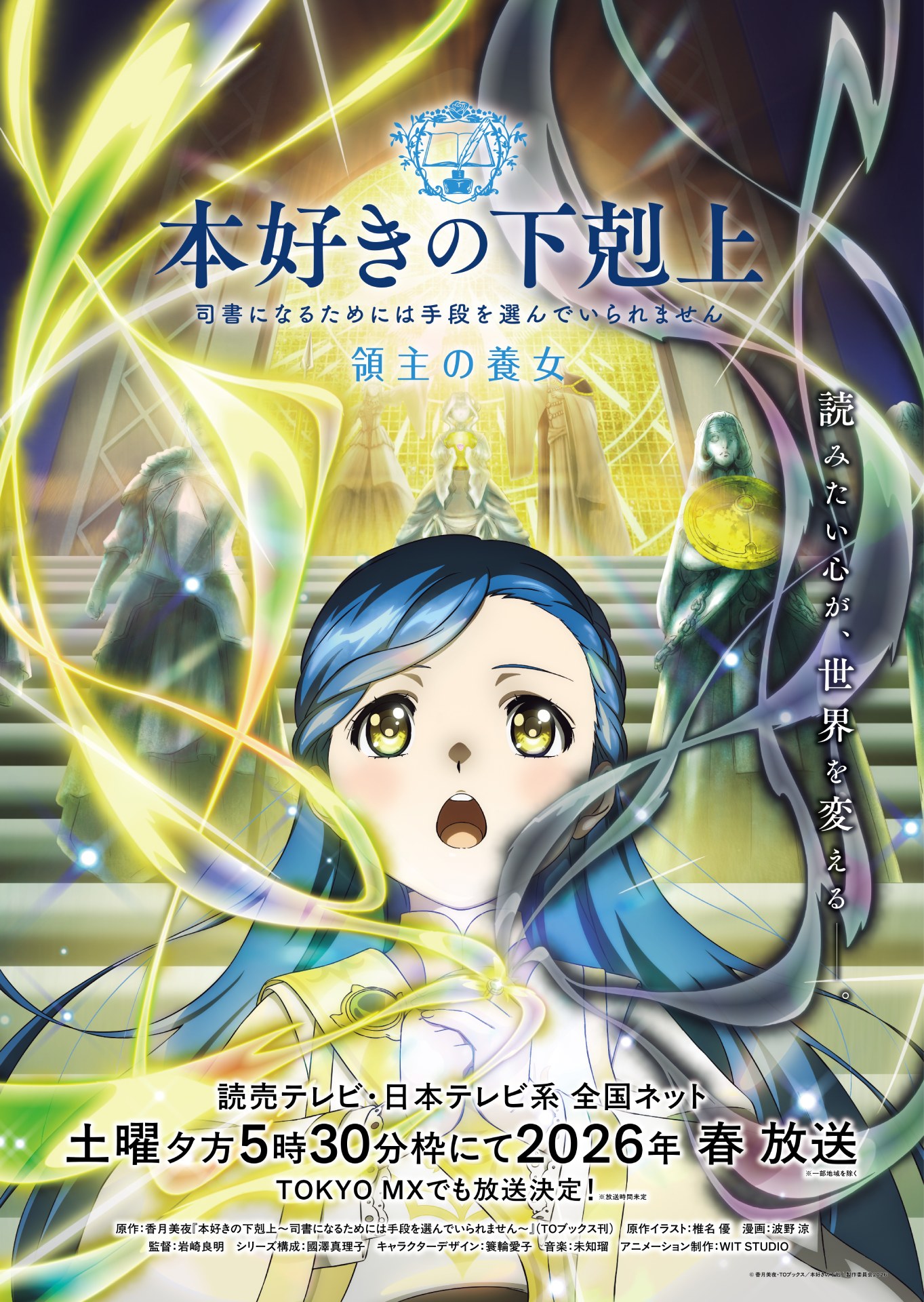 @BricksEstebanThe @anime_ytv Saturday afternoon anime (読売テレビ制作土曜夕方枠のアニメ) will soon premiere it's first #Isekai anime in timeslot history: Ascendance of a Bookworm Season 4: Adopted Daughter of an Archduke (#本好きの下剋上 領主の養女) premiering Holy Saturday, April 4 x.com/anime_booklove…
