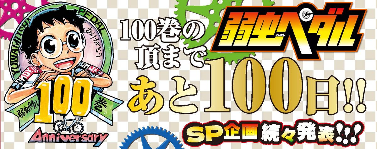 @mgmg_VRChat漫画『弱虫ペダル』コミックス100巻、5月8日発売決定 発売まで100日の記念ロゴ&ビジュアル公開 #ldnews news.livedoor.com/article/detail… 弱ペダ100巻⁉️