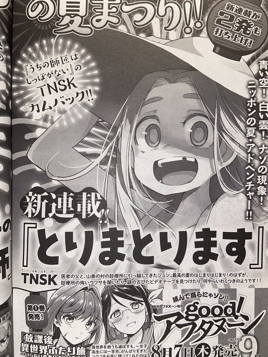 @tnsk私の新連載「とりまとります」が good!アフタヌーンにて始まりました‼️‼️‼️ "心癒されるほんわかファンタジー"ということで 皆様何卒よろしくお願い致します🙇♂️🙇♂️🙇♂️ 📹️#とりまとります pic.x.com/EndGDEeBjz
