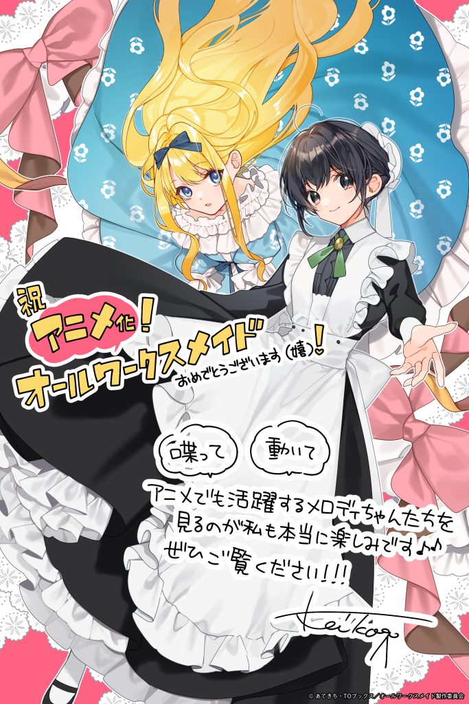 @OTD1KkkDj81FaIIアニメ放送がいつから始まるのか、発表がとても楽しみ!! 動くメロディ、ルシアナが見たい! #オールワークスメイド x.com/TOBOOKS/status…
