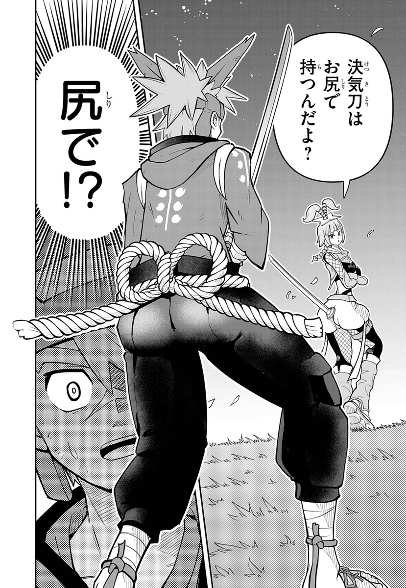 @Ktrpgtsukiケツバトラー、バチバチの少年漫画というかバトル描写とか滅茶苦茶にカッコイイし作画も凄くいいのになんで尻で刀もってるのかが分からない でも熱い漫画